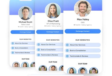 Destaca personalizando tu tarjeta de visita digital para reflejar la identidad de tu marca. Desde agregar tu logo hasta usar colores, fuentes y diseños personalizados, las tarjetas de visita digitales de Wave ofrecen infinitas posibilidades. Ya seas un freelancer, emprendedor o parte de un equipo corporativo, puedes mostrar tu marca personal y crear una impresión profesional.
